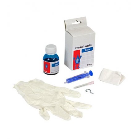 Součástí balení je lahvička s 50ml univerzální inkoustové báze, igelitové rukavice, injekční stříkačka, jehla, vrtáček a papírový kapesník pro pohodlné doplnění vypsané kazety. Doporučujeme plnit co nejdříve po vypsání kazety, nenechávat kazetu delší dobu bez inkoustu. Lze použít pro plnění inkoustových kazet pro tiskárny značek HP, Canon. Nedoporučujeme plnění čipovaných kazet z důvodu možné nefunkčnosti opakovaně použitých původních čipů. Obsah inkoustu je celkem 50ml.