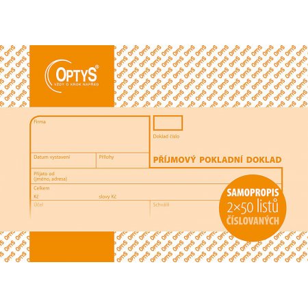 Příjmový doklad A6, samopropisovací, číslovaný, 2 x 50 listů