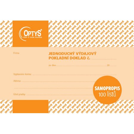 Výdajový pokladní doklad jednoduchý samopropisovací nečíslovaný formát A6 na šířku obsahuje 100 listů odtržitelných perforací, se zakládacím děrováním více