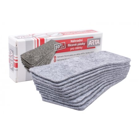 Náhradní filcy ARTA pro stěrky ARTA, SLIM a DUO 10 ks s rozšířenou stírací plochou 62 x 150 mm.