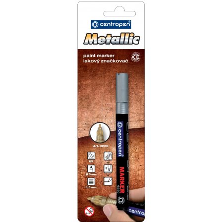 Lakový značkovač je vhodný pro psaní například na sklo, kov, plast, CD a DVD, stopa písma je světlostálá, odolává vodě i při bodu varu, teplotě do 100°C, otěru i povětrnostním vlivům, značkovač je osazen válcovým hrotem a přepouštěcím mechanismem. Neobsahuje Tolulen/Xylen.