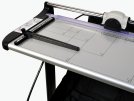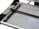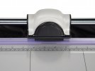 Kvalitní kolečková řezačka s pevnou kovovou základnou a řeznou hlavou umístěnou na kovové tyči. Pracovní stůl je vybaven natištěnými měřítky a posuvnou zarážkou souběžnou s…více
