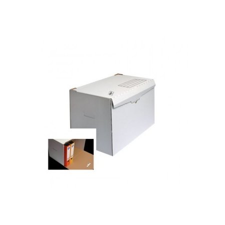 Archivační box je určen pro ukládání dokumentů v odkládacích mapách,spispových deskách nebo v pořadačích. Archivní systém je určen pro 6ks pořadačů se hřbetem 8cm nebo 10ks pořadačů se hřbetem 5cm. Je vyroben z bílo-hnědé lepenky,která je potištěna tabulkou pro snažší popisky.Materiál: vlnitá lepenka s potiskem, barva: bílá, rozměr: 50x33x30 cm.