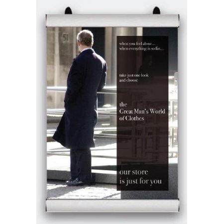 Hliníková zacvakání lišta pro zavěšení plakátu. Je možné její přichycení na zeď nebo zavěšení do prostoru. Balení obsahuje horní a spodní lištu a 2 očka pro připevnění na zeď