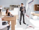 Magnetický flipchart s výsuvnými rameny, popisovatelný, výškově nastavitelný.