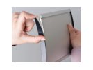 Snadno a jednoduše můžete sundat přední kryt pomocí přiložené plastové přísavky a vyměnit cedulku nebo plakát.