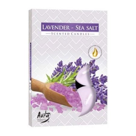 Vonná čajová svíčka Levandule mořská sůl 6 ks v krabičce