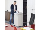 Skartovač je vybaven EPC (elektronická regulace výkonu) pro optimalizaci skartování bez zaseknutí, systémem Energy Smart a automatickým odpojením od sítě pro maximální úsporu energie. Nechybí automatický Start&Stop, bezpečnostní zastavení při otevření dvířek a/nebo plném odpadním vaku a automatický zpětný chod v případě zaseknutí. Odpadní nádoba s velkým objemem 150 ks je na kolečkách.